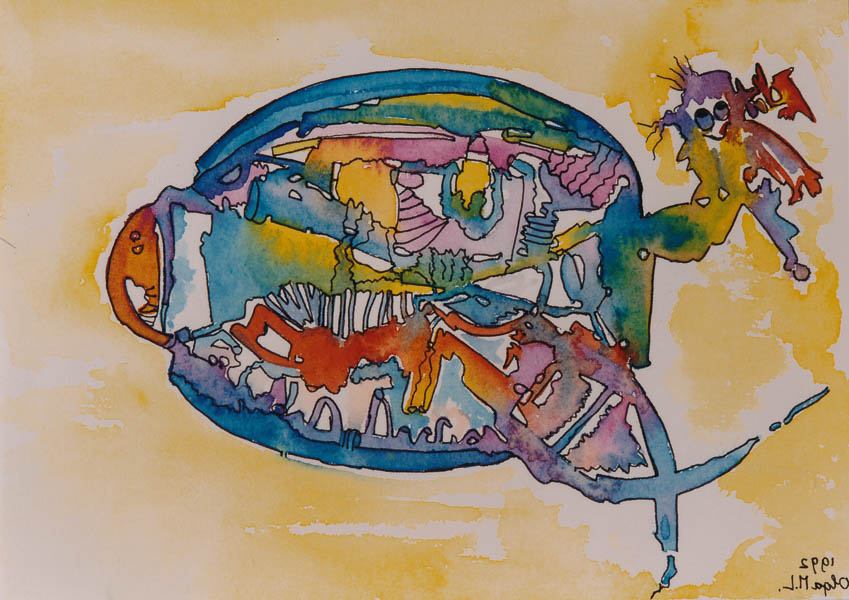 Het is duidelijk te zien... Een vliegend droommachien. Jan duwt en creƫert De droom, waarin hij verkeert, Het Ieven op deez' aard, Is Jan heel wat dromen waard!